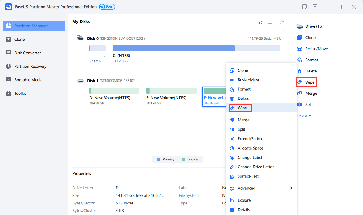 EaseUS Partition Master allows you to hide a partition. It can be useful for protecting important information from unauthorized or casual access.