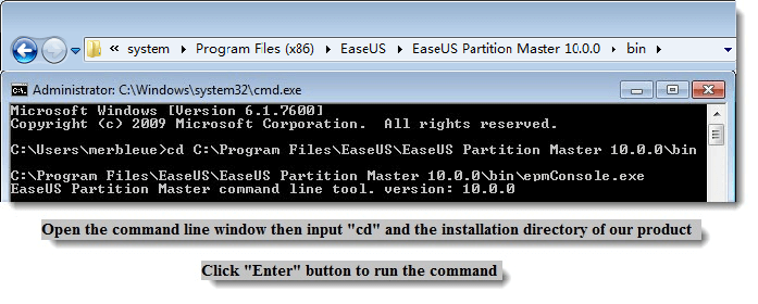 EaseUS Partition Master works with Windows Command Line. Using the command line gives you the ability to manage your hard drive without launching the program. Additionally, you can use it to add specific operations when creating a batch file.
