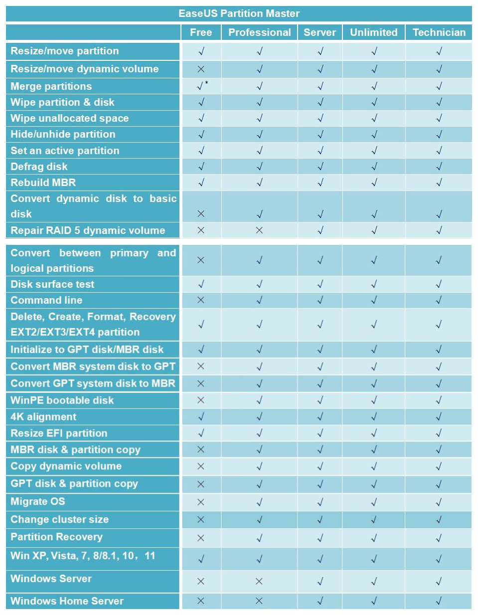 There are a total of 5 distinct versions of EaseUS Partition Master available.