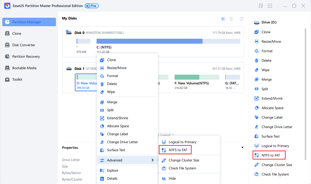 1. Select a partition, Click Change Cluster Size in the feature list.