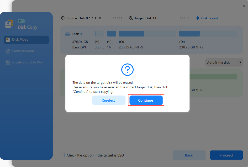 Step 5. Click "Proceed" to start the hard drive cloning process.