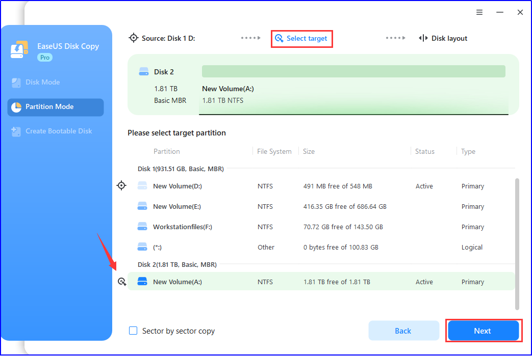 Step 2. Choose a destination partition and then click “Next”.