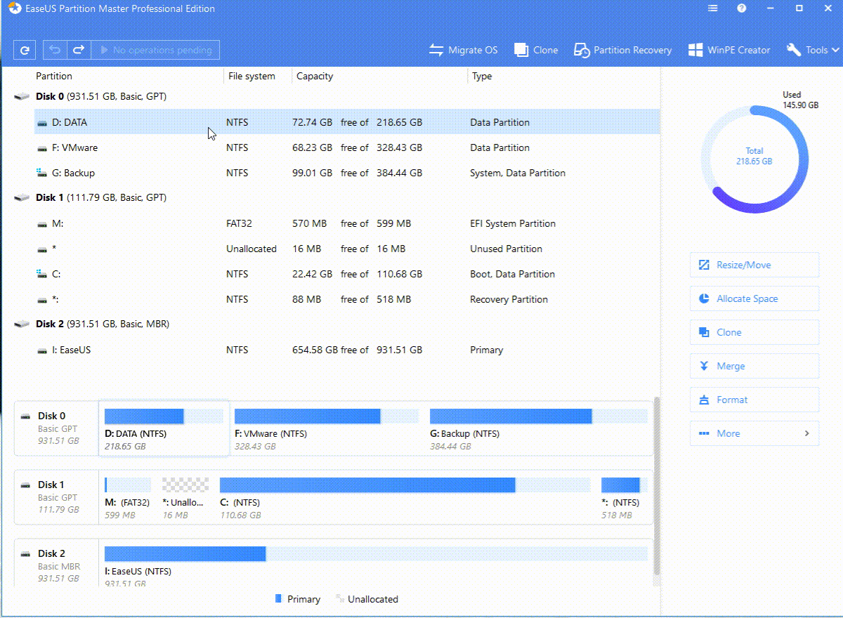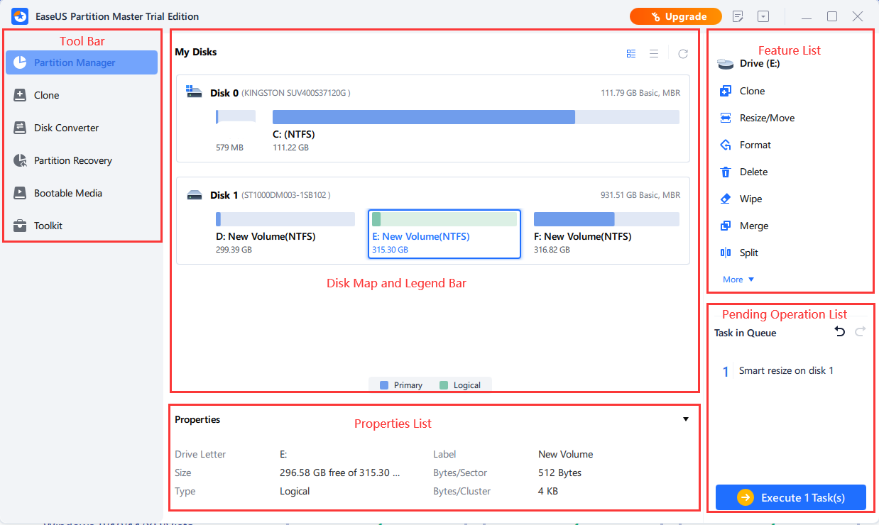 EaseUS Partition Master is a reliable and intelligent tool that helps you manage your hard drive in various ways. With its help, you are able to easily organize and optimize your hard drive with Create, Delete, Resize and other dozens of powerful features.