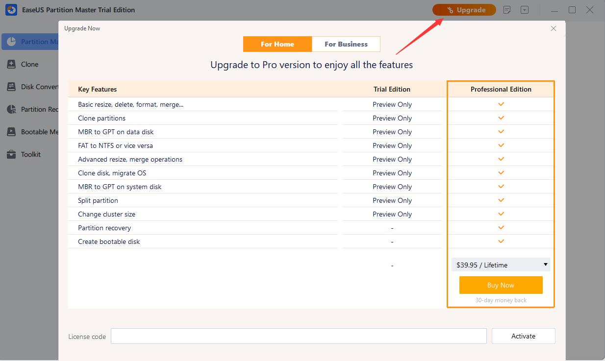1. To activate Free or Trial edition, please click Activate/Upgrade button at the top-right corner.