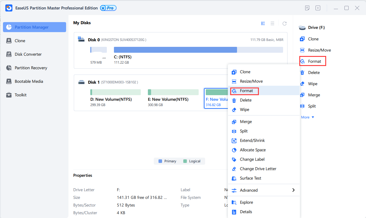 EaseUS Partition Master allows you to hide a partition. It can be useful for protecting important information from unauthorized or casual access.
