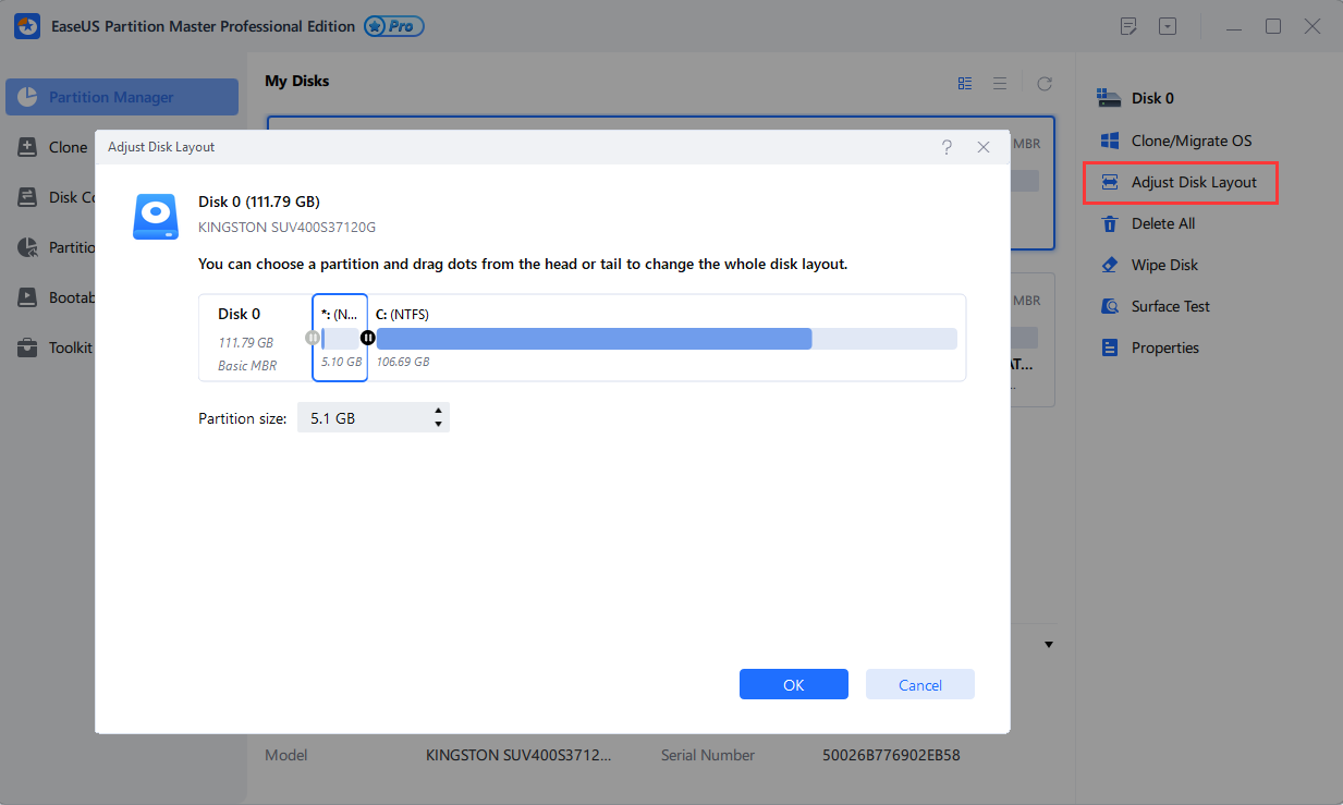 3. Once done, click OK. Any changes made to the disk layout will be saved in the Pending Operation List until they are applied.