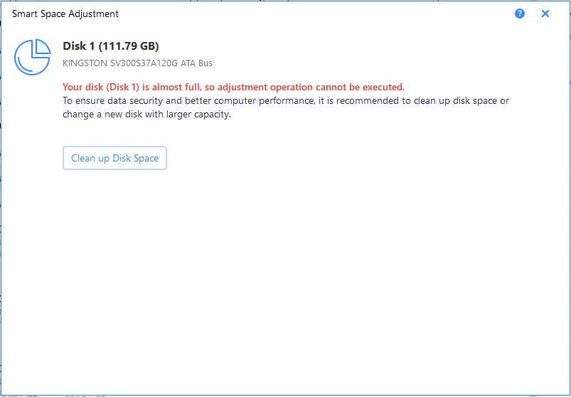 When the available space on your partition is insufficient, our product will prompt a low disk space alert.